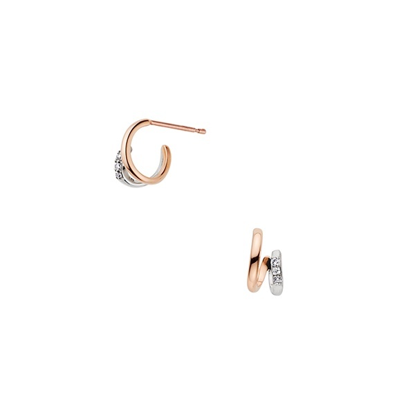 VA ヴァンドーム青山のK10コンビカラーダブルフープピアスホワイトゴールドとピンクゴールドのフープを2つしているように見える2連風デザインのベーシックなピアス。